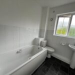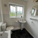 Double glazed Georgian bar window, part tiled, vinyl flooring, wall mounted heater, bath, w/c, hand basin, shaving point.