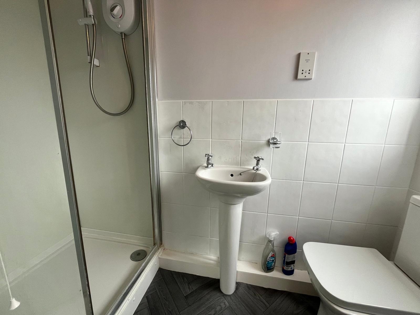 Double glazed window, part tiled, shower cubicle, electric shower, w/c and hand basin, vinyl flooring.