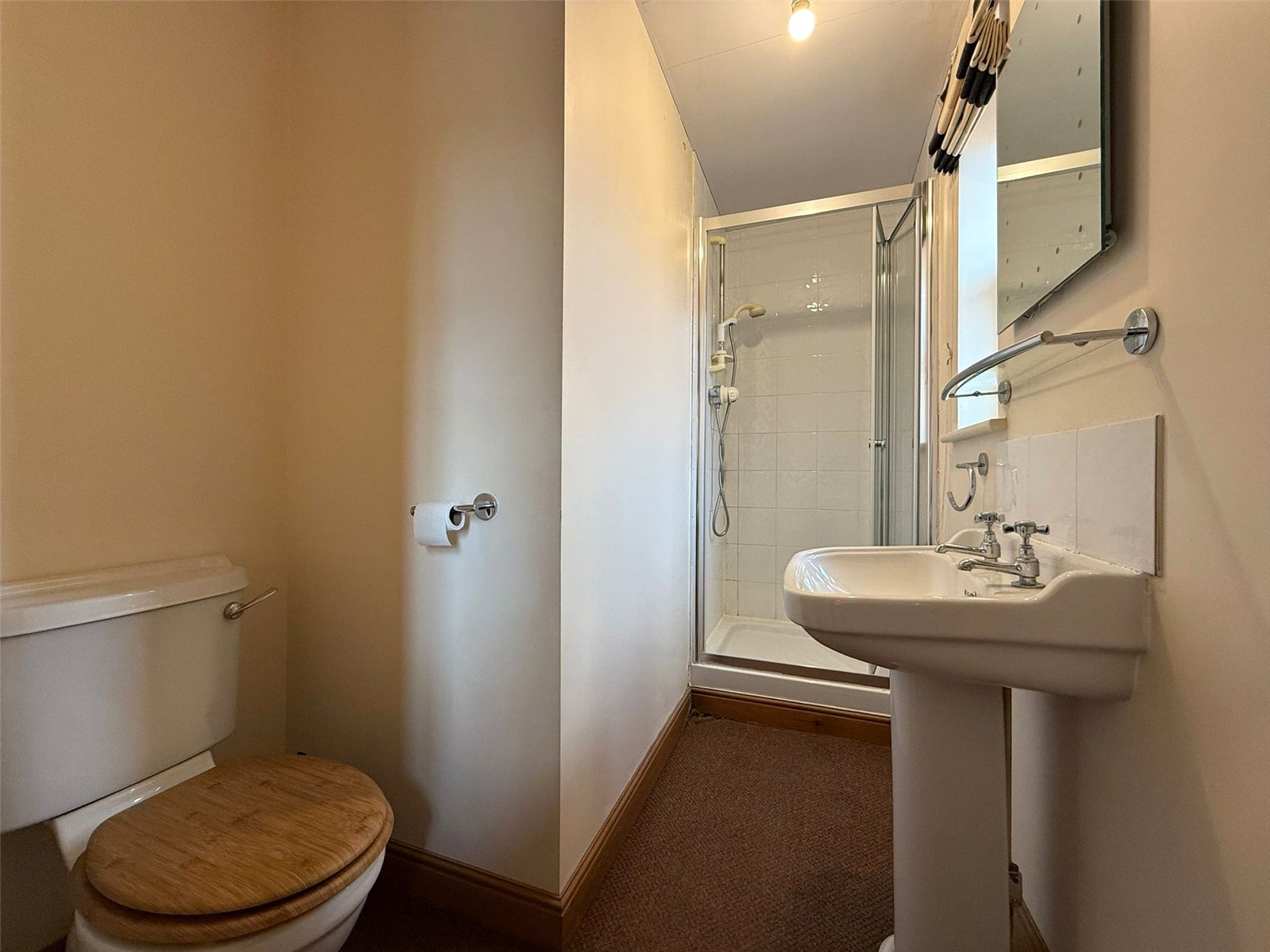 Carpet, radiator, W/C, hand basin, shower, double glazed sash window.