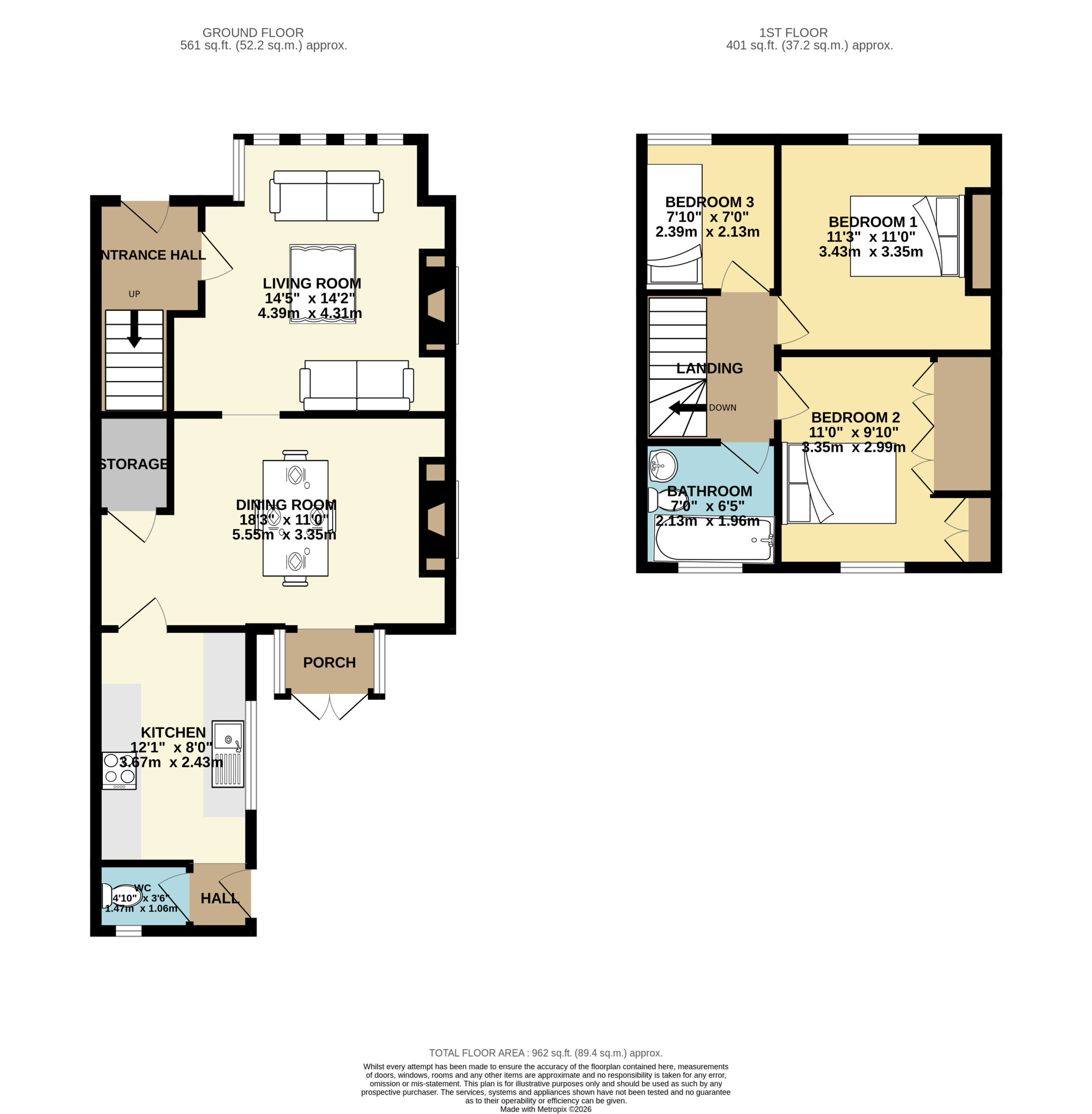 1/ James Winn Estate Agents has not tested any services, appliances or heating and no warranty is given or implied as to their condition. 2/ All measurements are approximate and intended as a guide only. All our measurements are carried out using a regularly calibrated laser tape but may be subject to a margin of error. 3/ We believe the property is freehold but we always recommend verifying this with your solicitor should you decide to purchase the property. 4/ Fixtures and fittings other than those included in the above details are to be agreed with the seller through separate negotiation. 5/ All EPC`s are generated by a third party and James Winn Ltd accepts no liability for their accuracy.