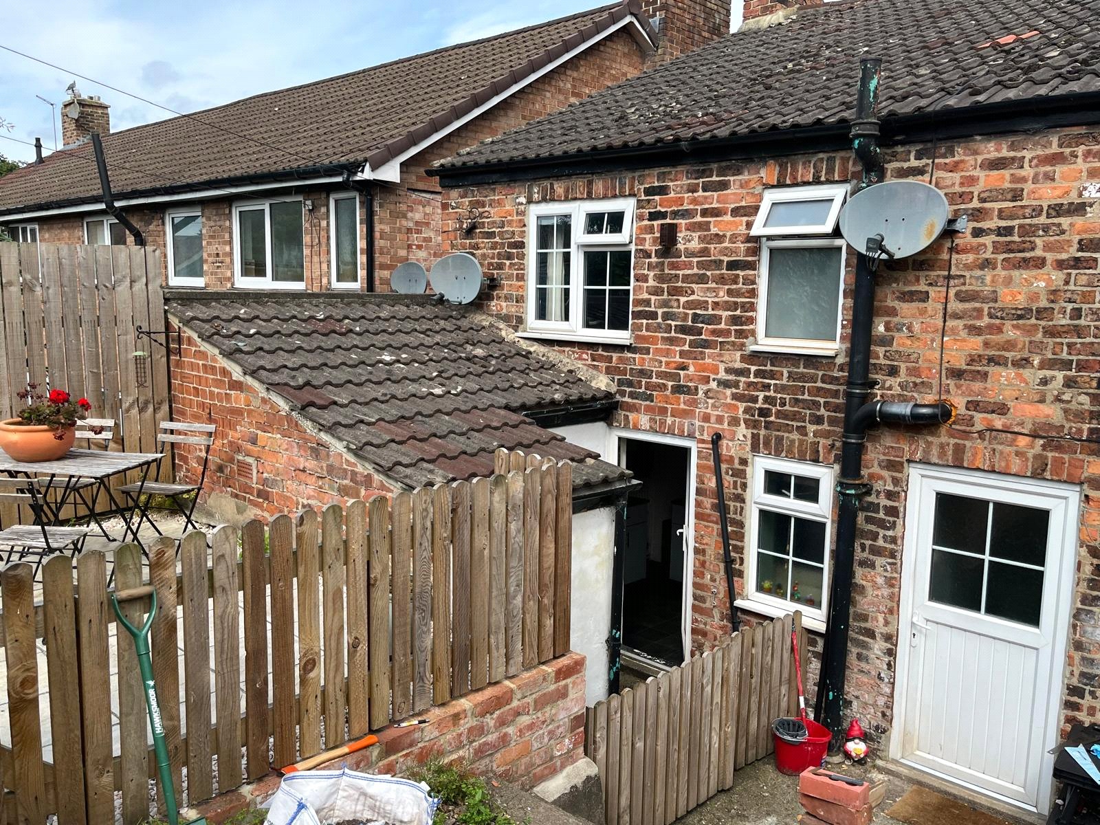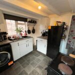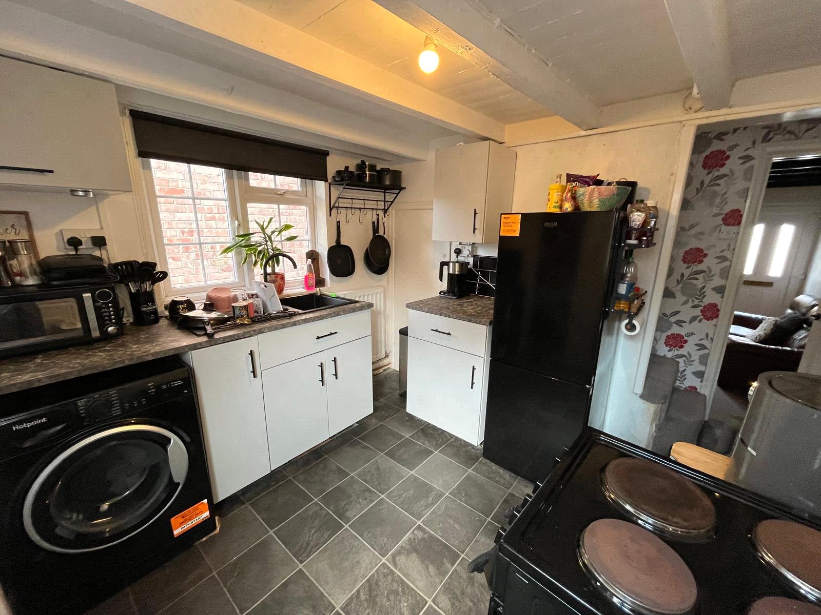 Double glazed Widow, Door to rear garden, Full range of base and wall units, Vinyl flooring, Tiled splashback, Beamed ceiling, Under stairs cupboard housing Boiler.