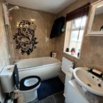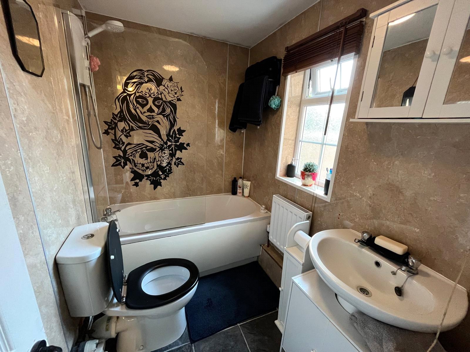 Double glazed window, Bath, toilet, hand basin, Cladded walls, Vinyl flooring, Electric shower, Shower screen.