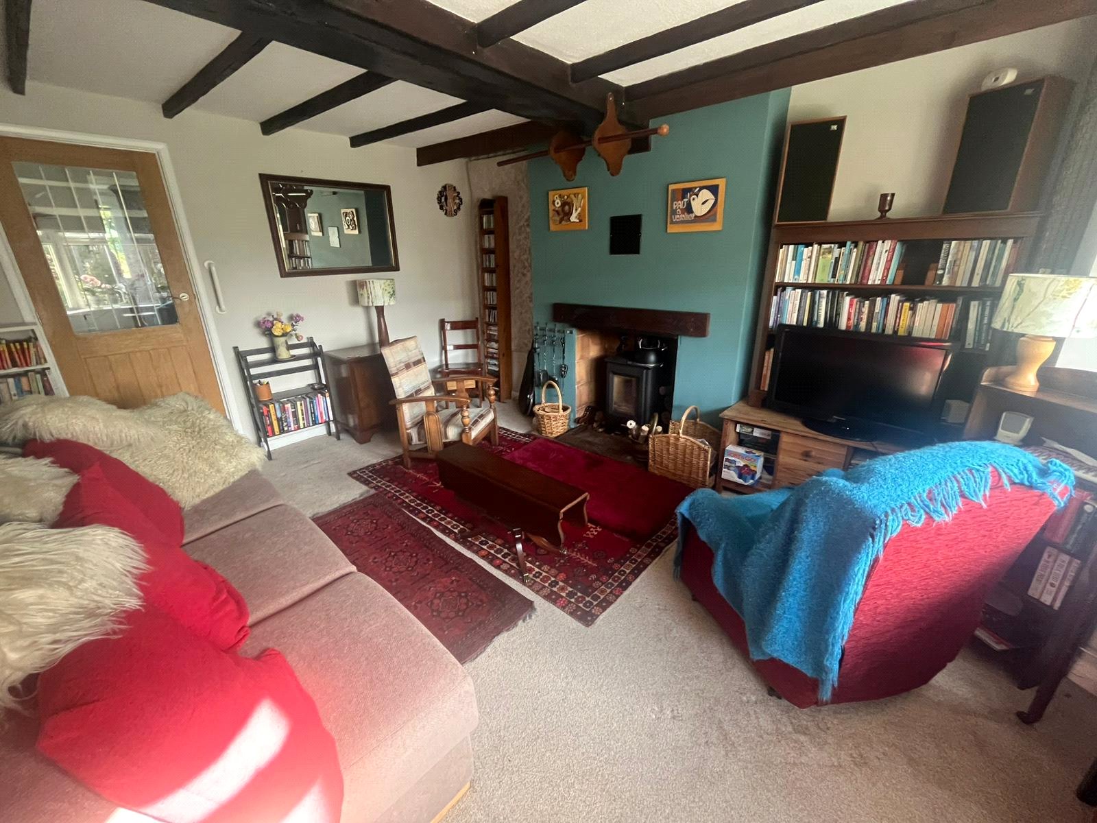 Double-glazed bay window, radiator and multi-fuel burner, internal doors are oak fronted, step up to the kitchen diner through oak fronted and glass door.