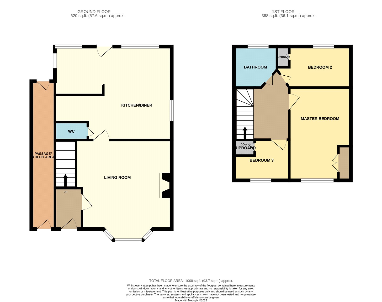 Upstairs, the first floor offers a generous master bedroom with built-in wardrobes, a well-proportioned second double bedroom also with built in storage housing the water tank, the third bedroom is perfect for a guest room or nursery with over-stairs storage and a family bathroom with walk-in shower.