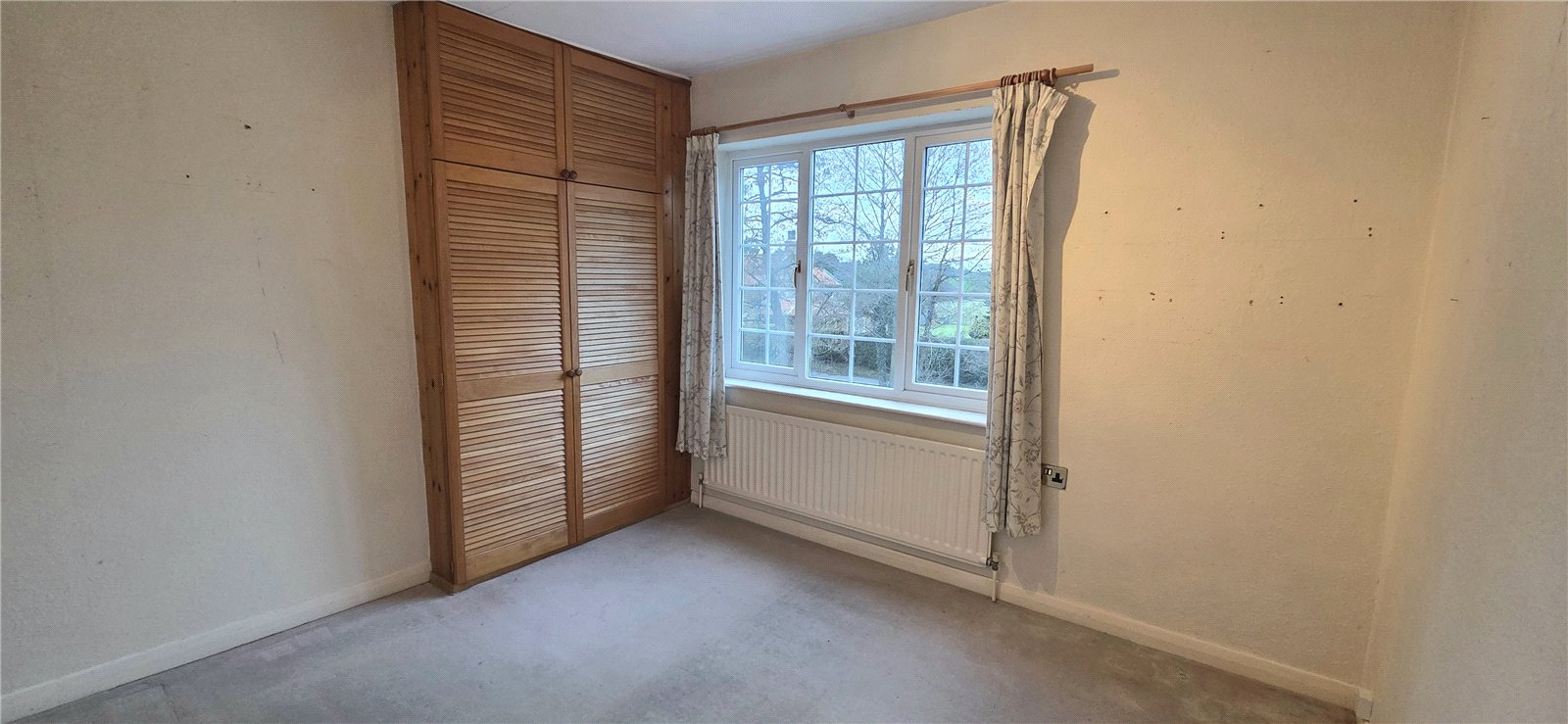Double-glazed window, double fitted wardrobe, radiator.