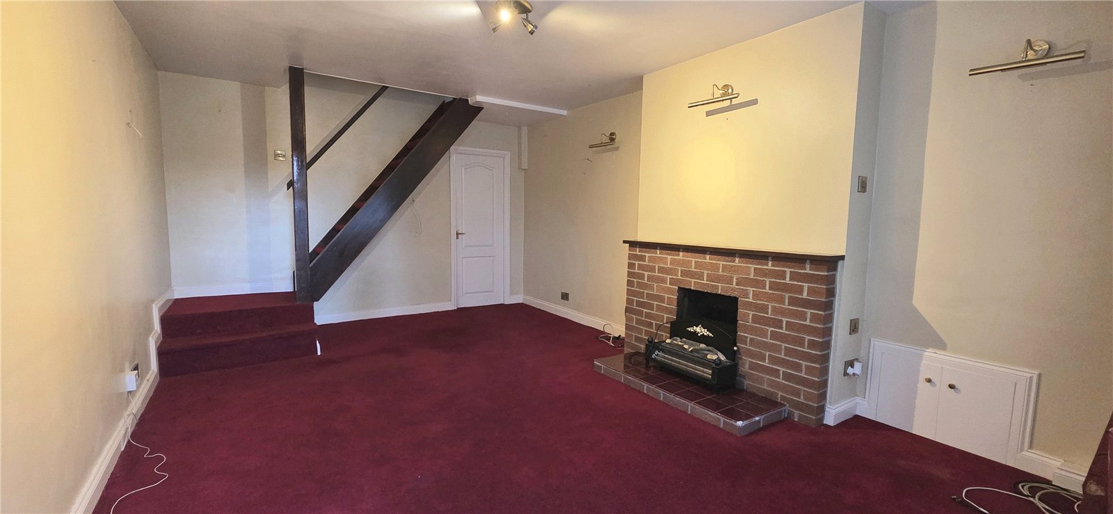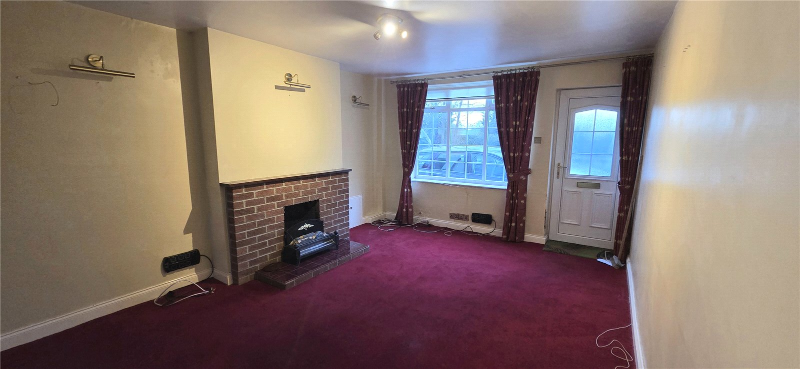 Double-glazed Georgian bar window, feature fire breast with brick fire place and coal fire.