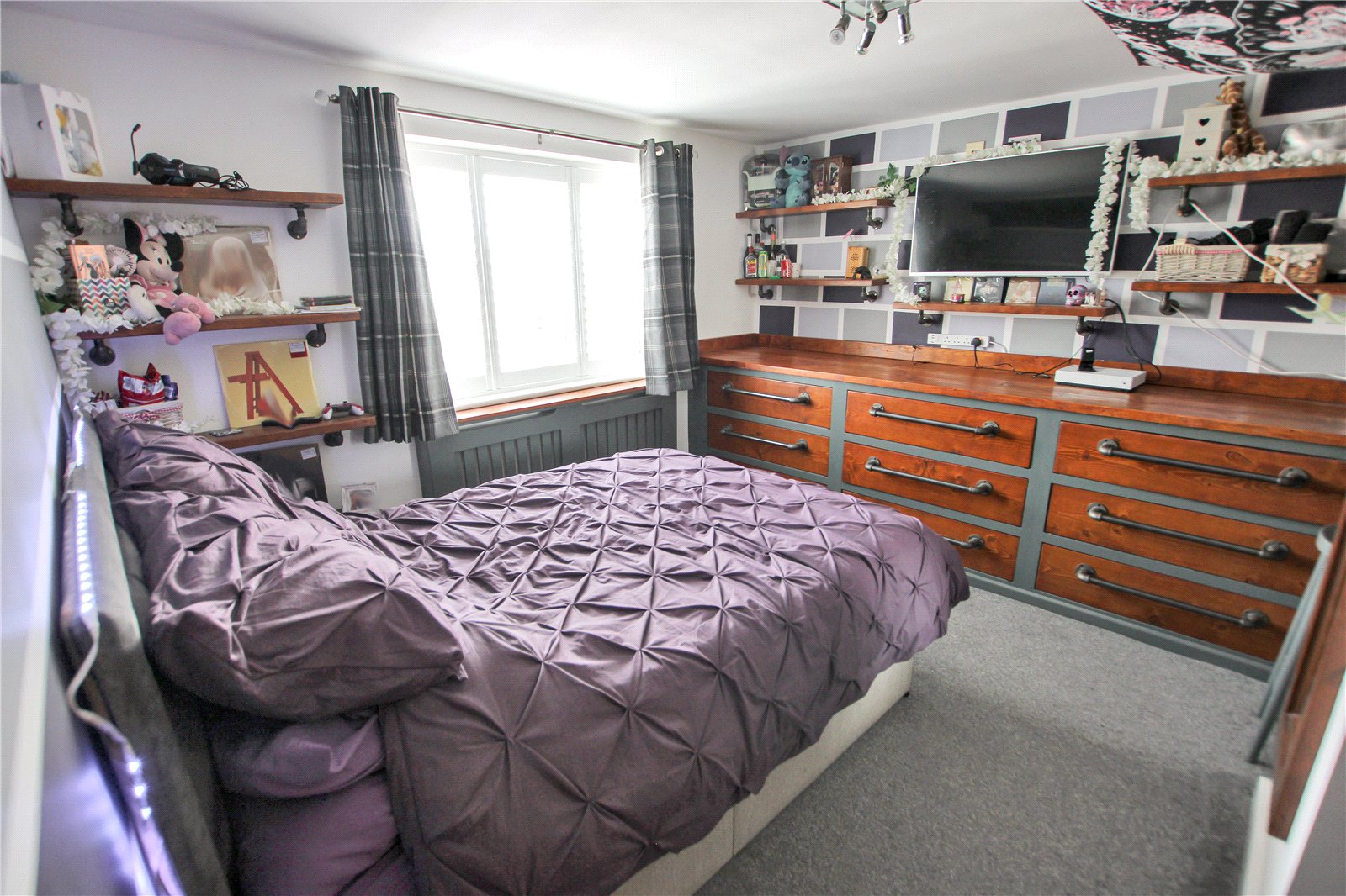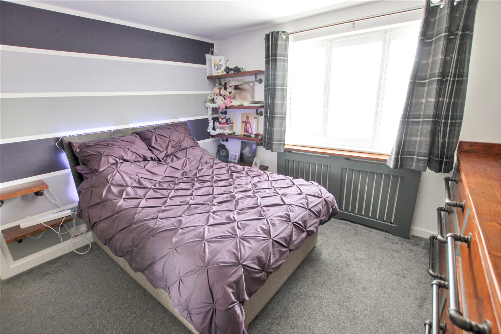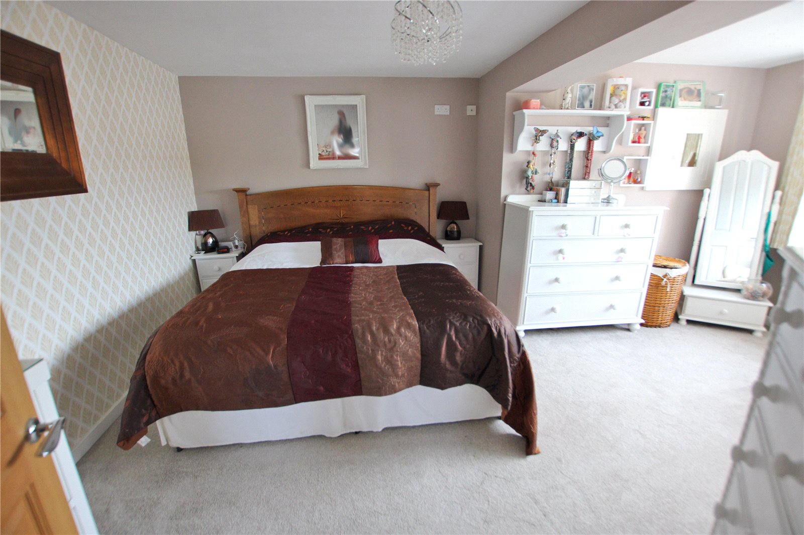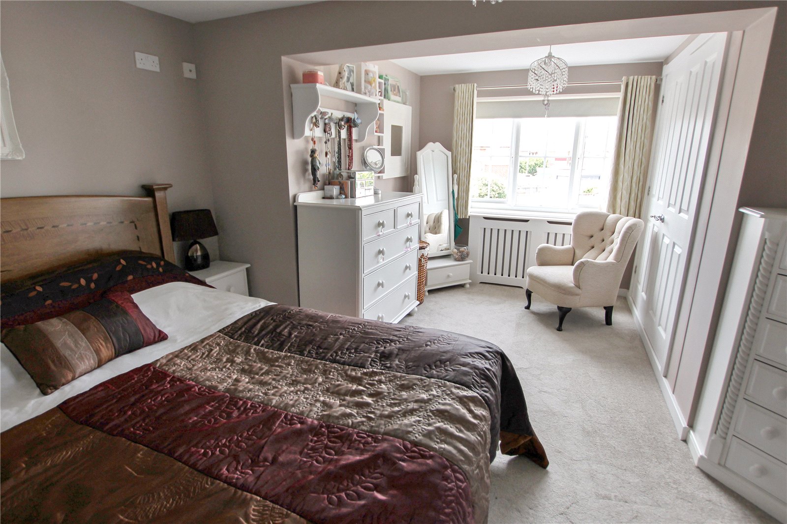 Fitted wardrobes, Radiator with cover, Carpet.
