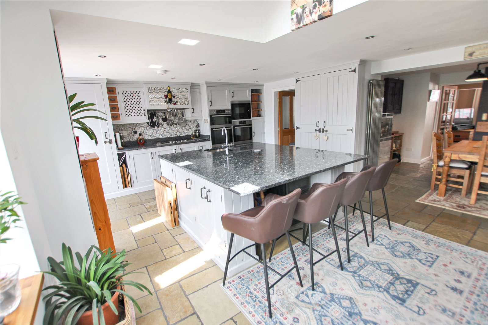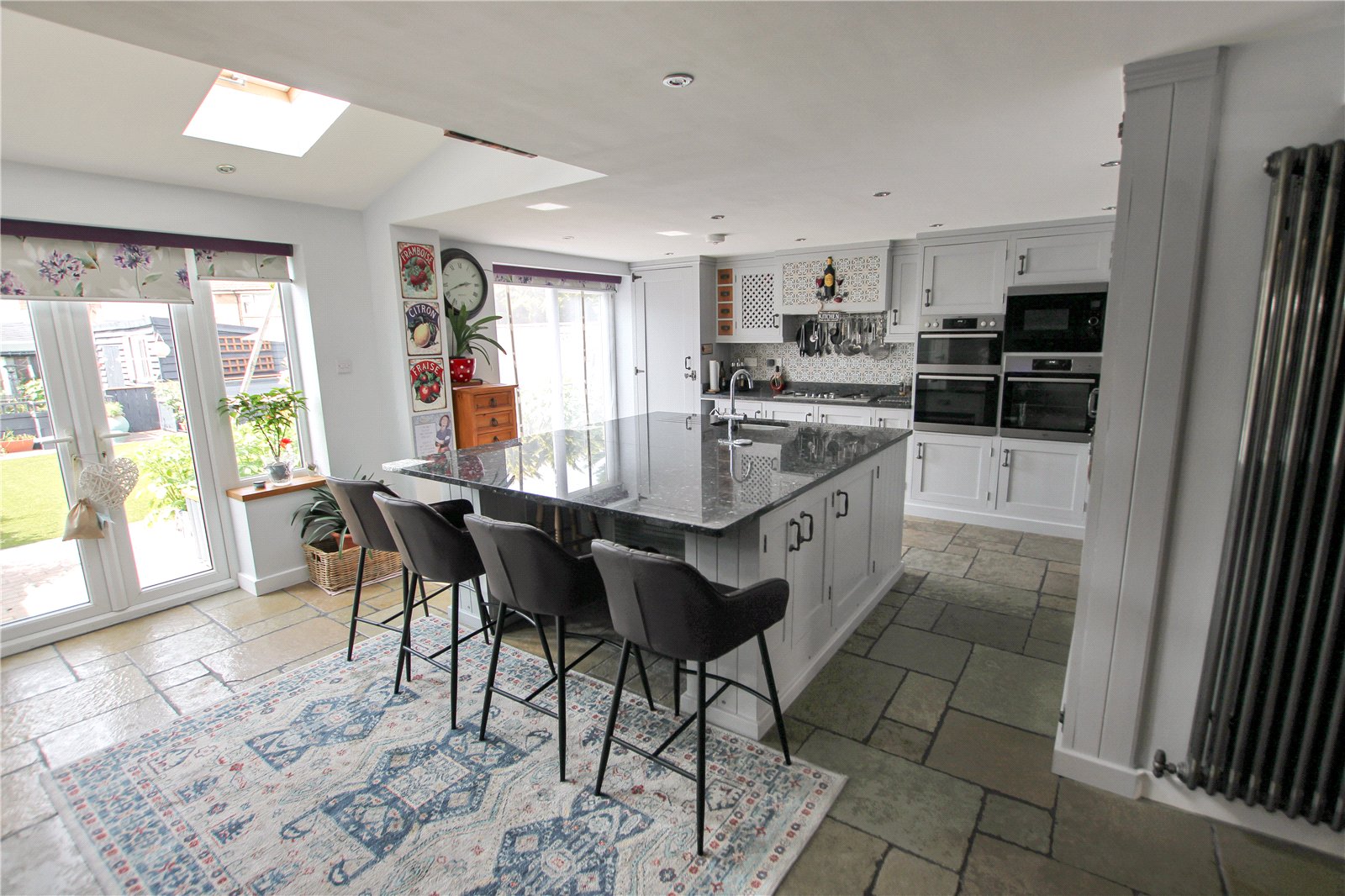 Double glazed window and 2 sets of Patio doors, Full range of Handmade Base and Wall units, Large centre Island, Granite work suffices, Built in Double Oven, Built in Single Oven, Built-in Microwave, 2 Full height radiators, stone floor, Tiled splashback, Gas Boiler.