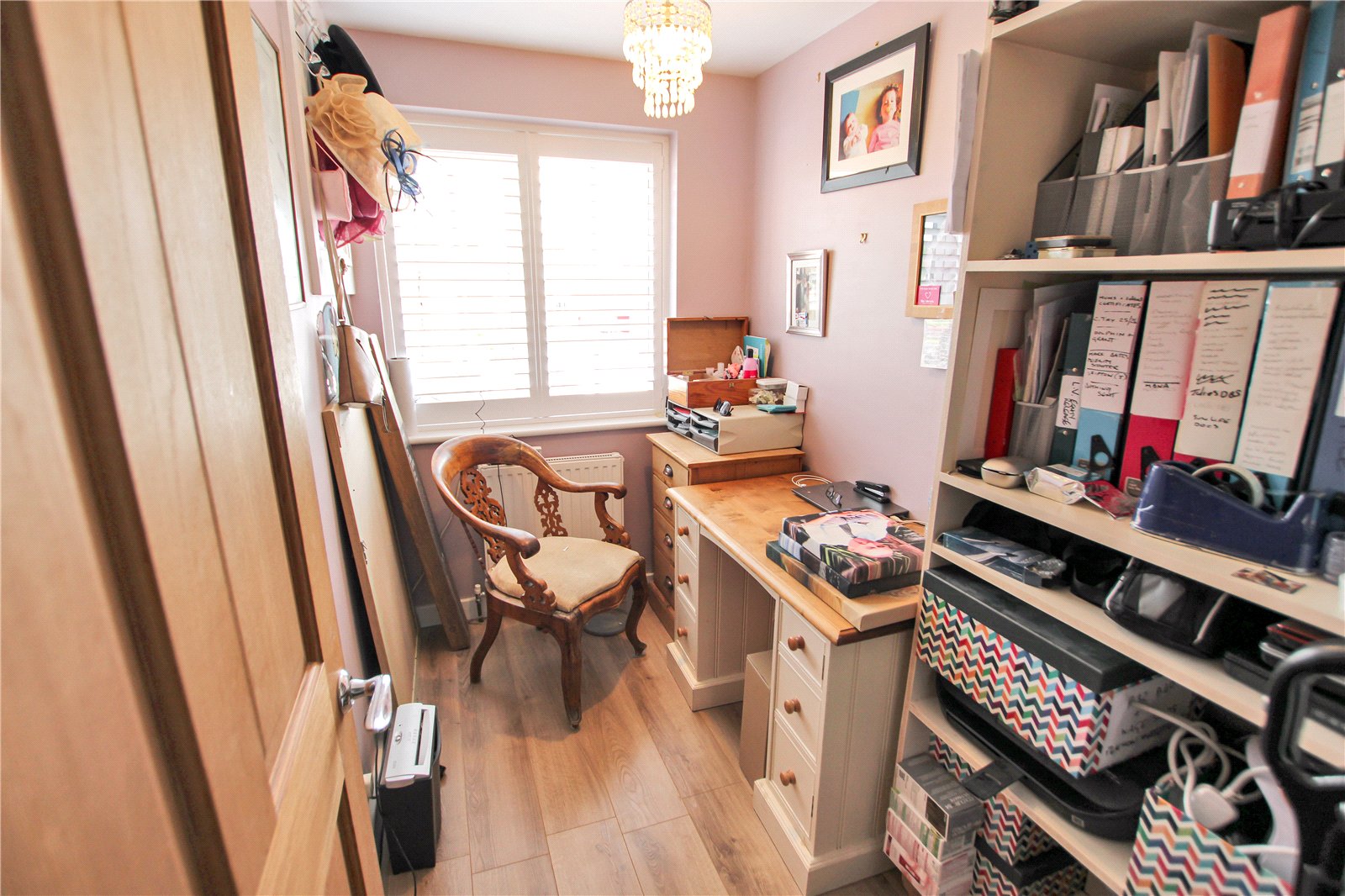 Double glazed window, Window shutters, Electric fire, Laminate flooring, 3 Built-in storage cupboards.