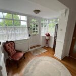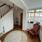Original wooden Entrance door and windows, Solid wood flooring, Leading to Stairs and Downstairs Cloakroom. Radiator.