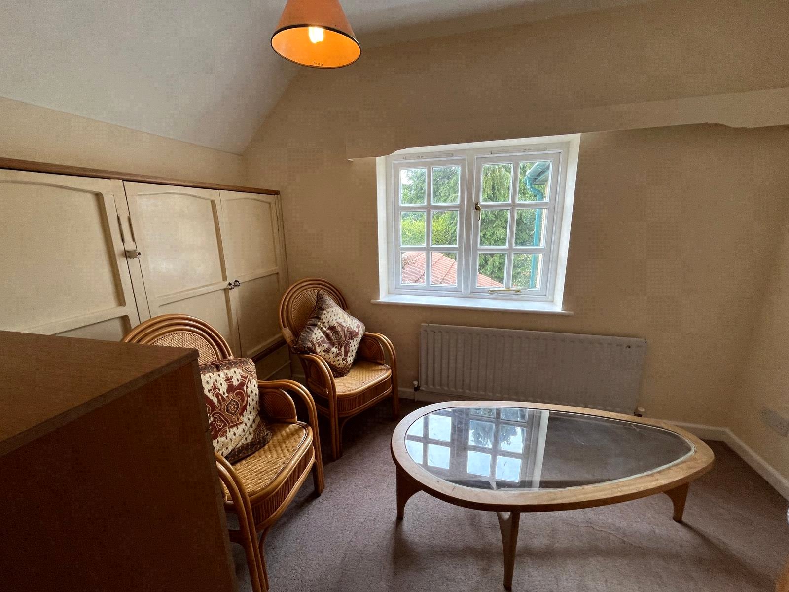 Double-glazed window, Full wall of mirror fitted wardrobes, Decorative beamed ceiling, Radiator.