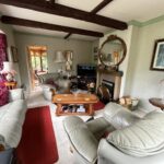 Large walk-in Bay wooden framed windows, Secondary-glazing, Door to Conservatory, decorative beamed ceiling, Feature fireplace with integral Log burner, Radiator.