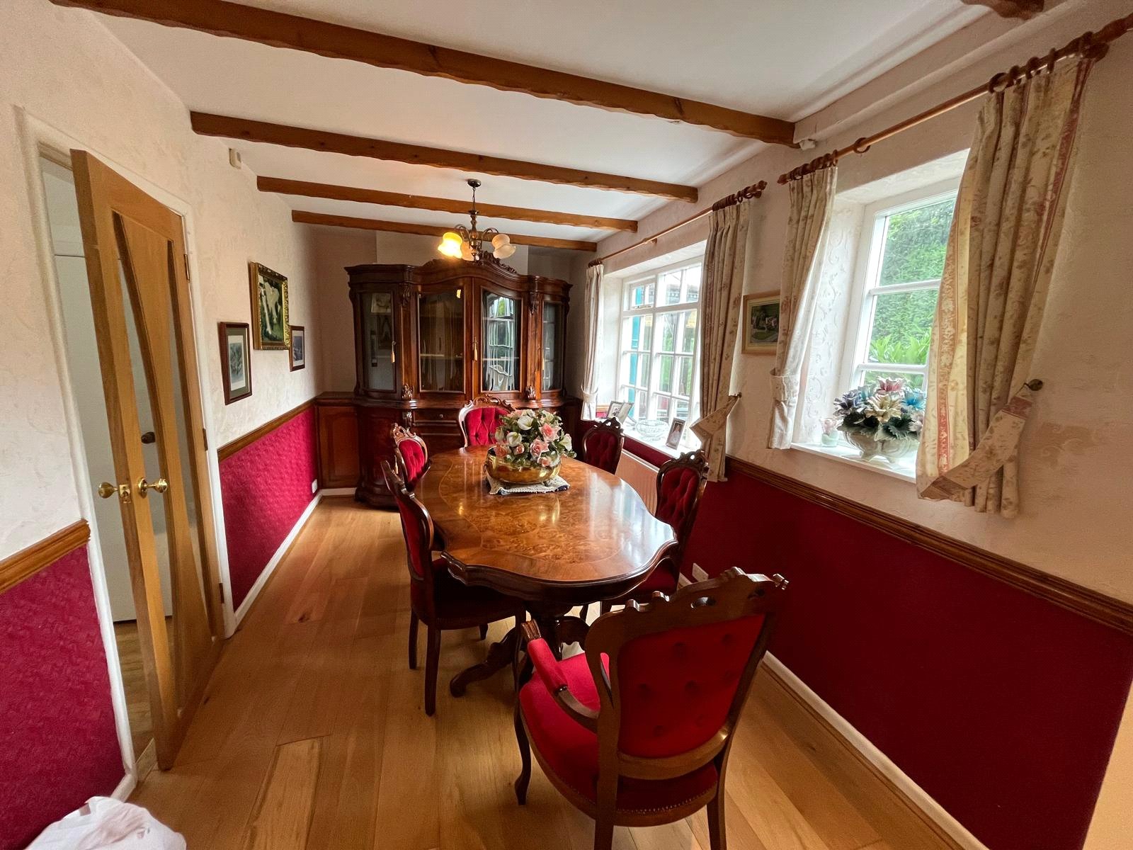 Wooden framed windows, Solid wood flooring, Decorative beamed ceiling,