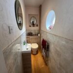 Double-glazed window, Walk-in shower cubicle, Bar shower, Fully Tiled, Laminate flooring, Built-in storage cupboard, Wash hand basin, W/C, Full height modern chrome Towel warmer.