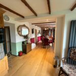 Large open plan hallway leading to Livingroom, Dining Room. Solid wooden flooring, Under stairs storage cupboard.