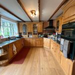 Wooden framed window and Rear door to Garden, Full range of Base and Wall units, Solid wood flooring, Double Electric oven, Ceramic Hob, Extractor, Tiled Splashback, Graphite grey modern tall Radiator.